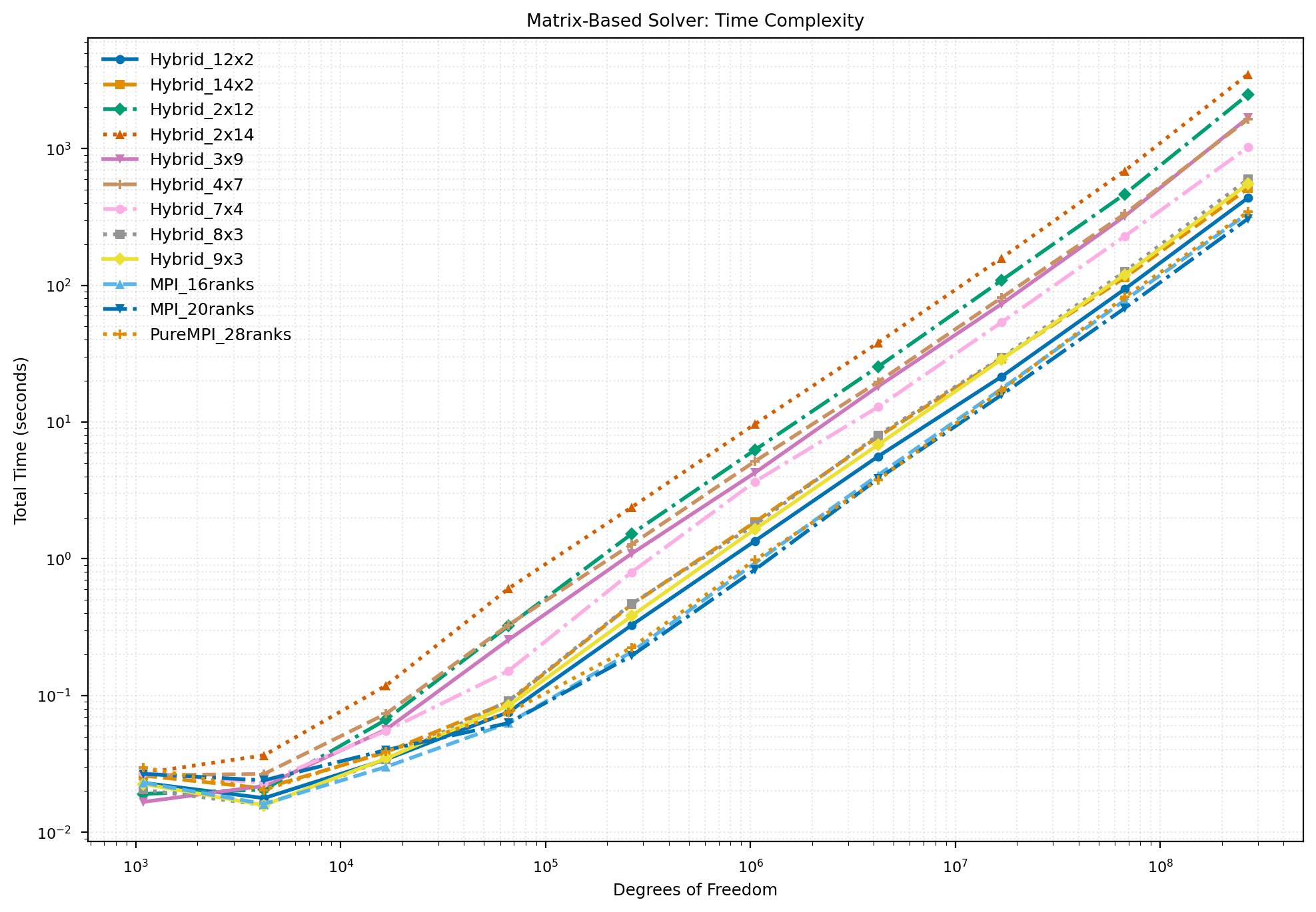 Both solvers support hybrid MPI + threading parallelization for optimal performance on modern HPC architectures.