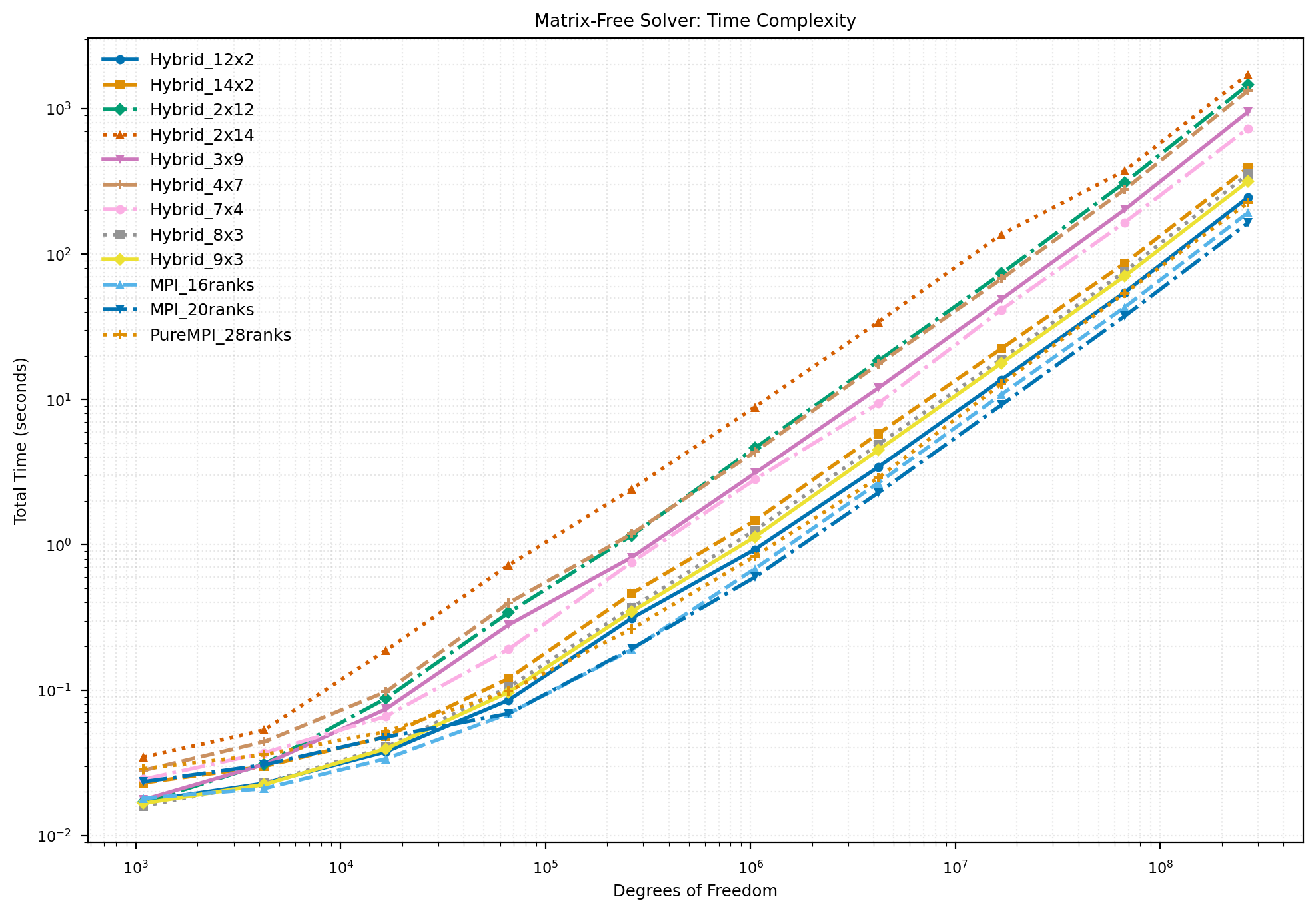 - Matrix-Free Solver: On-the-fly operator evaluation with Geometric Multigrid (GMG) preconditioning